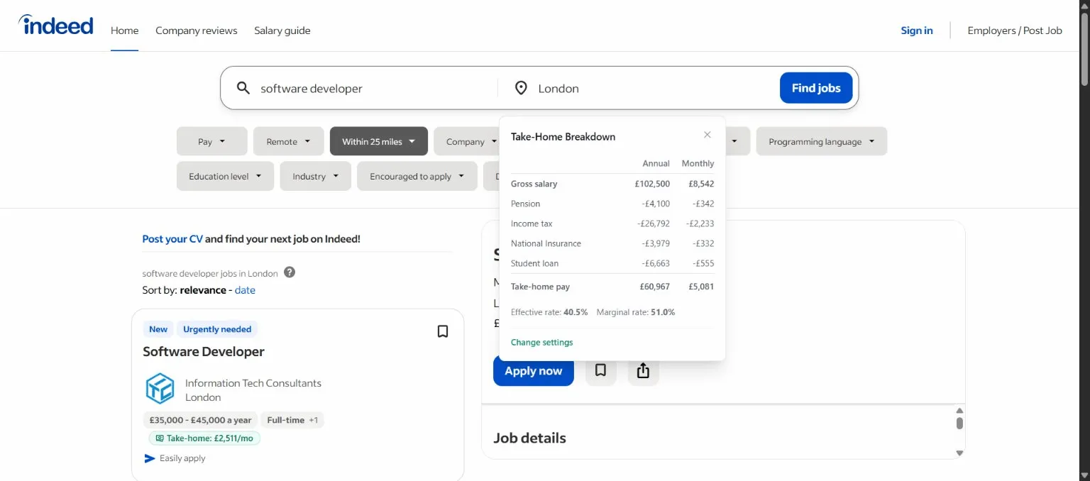 Stop guessing what a salary actually means. myTakeHome instantly shows your take-home pay right on the page as you browse Indeed, Reed, LinkedIn, and more.